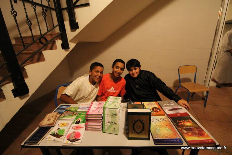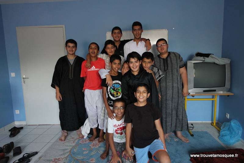 L’association des musulmans de Libourne a été crée en 1989. Elle avait alors pour lieu de culte un local commun avec les chrétiens de la ville. Les lieux furent rapidement inadaptés par rapport à l’augmentation des fidèles et c’est en 1990 que l’AML achète un pavillon qui est transformé en mosquée. Dix ans plus tard l’AML décide d’acheter un terrain pour y bâtir la mosquée dans laquelle nous nous sommes rendus. Les travaux commencèrent en 2002 pour se finir en juin 2011. La mosquée peut aujourd’hui accueillir plus de 300 familles et possède plusieurs salles de classes. D’ailleurs, les enfants sont au centre de cette mosquée car durant ce mois de Ramadan un programme leur est consacré en mettant l’accent sur l’apprentissage de l’arabe et du Coran. Un groupe d’une vingtaine d’enfants se réunit chaque jour pour étudier (cf la photo d’un groupe d’enfant).