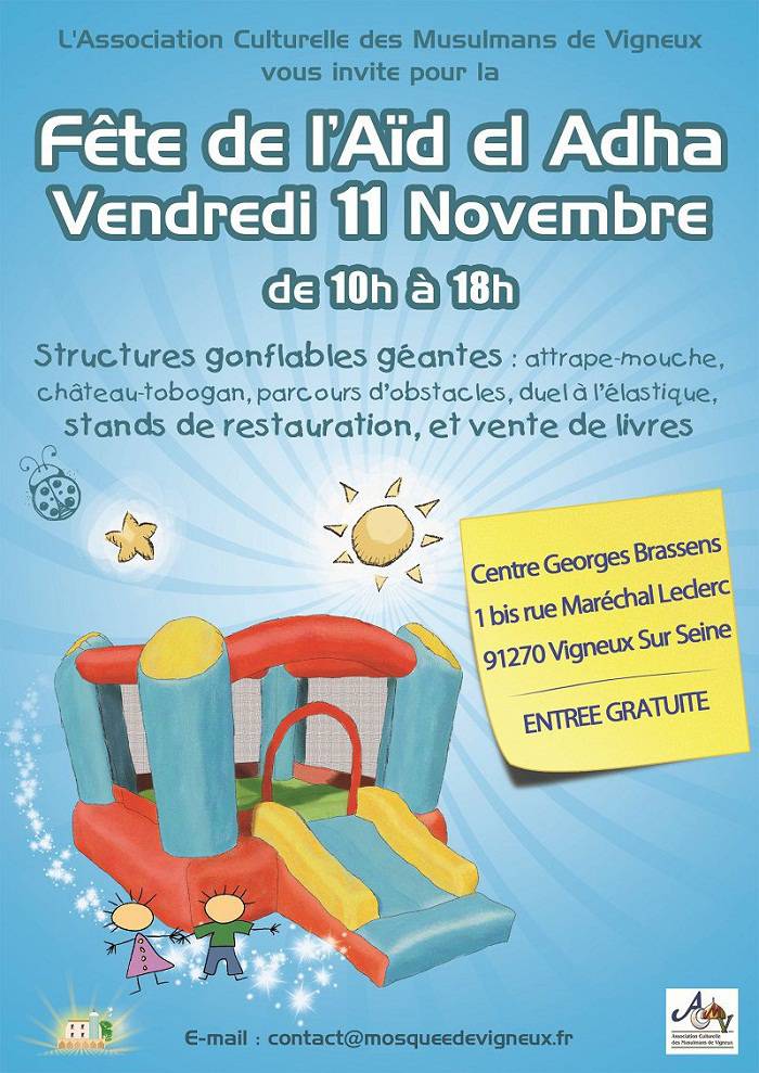 Le 11 novembre sera également la grande journée des enfants, chaque année, l’association culturelle des musulmans de Vigneux met en place un mini parc d’attraction, une journée où les enfants pourront profiter des structures gonflables géantes et de dizaines de jeux différents, animations, etc…