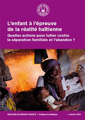 Dans un rapport publié 3 ans après le séisme, le Secours Islamique France interroge les causes profondes de la séparation familiale en Haïti et les conséquences réelles sur la vulnérabilité des enfants .En Haïti, 1 enfant sur 5 ne vit pas avec ses parents biologiques, 1 sur 10 est placé en domesticité. Le pays se situe au deuxième rang mondial pour les fléaux que sont le trafic et la traite des enfants. L’objectif de maintenir les enfants au sein de leurs familles demande une approche constructive et de long terme, qui s’appuie en priorité sur les acteurs haïtiens.