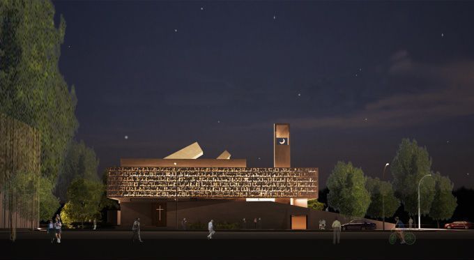 Nous avions déjà fait part d’un projet similaire, une mosquée-église en Suède, les deux communautés avaient fait le choix de partager un terrain pour construire une mosquée-église. Fifty-Fitfy église et mosquée