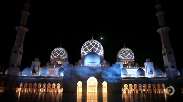 Dans le cadre de la journée national de l’Union des Etats Arabes, un incroyable spectacle de projections nocturnes illumina la grande mosquée mosquée Sheikh Zayed à Abu Dhabi. Un spectacle de lumière qui a réussi à mettre en valeur les composantes architecturales de cet édifice.