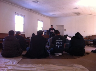 Depuis le 24 décembre, se sont donc une trentaine de musulmans qui se réunissent chaque vendredi dans la grande salle de la chapelle pour écouter la khotba (discours religieux) et faire la prière. Les femmes se réunissent à l’arrière de la salle et les hommes devant derrière l’imam.