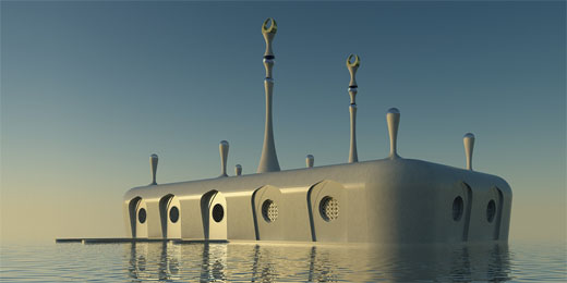 Mosquée du monde. Rien ne semble irréalisable à Dubaï. Afin d’éviter que les habitants de la « Palm Jebel Ali » reviennent sur la terre ferme pour prier; les promoteurs ont le projet de construire quatre mosquées flottantes. Ses nouvelles mosquées d’un air futuriste devraient voir le jour fin 2011.