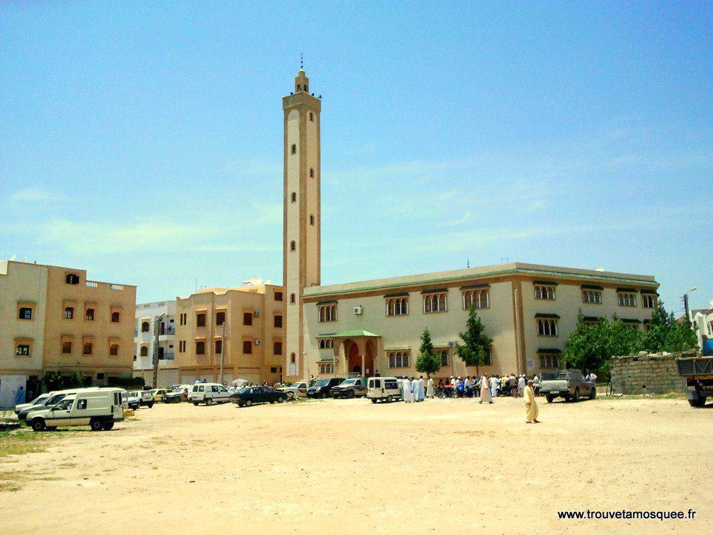 Ciel bleu, soleil au zénith, babouches aux pieds, c’est la classe à Agadir. La photo ci-dessous est la grande mosquée Billal ibn Rabah dans le quartier Hay al Houda à Agadir dans le sud du Maroc. On remarquera les quelques spécificités architecturales des mosquées du Maroc, la forme cubique du minaret, les tuiles vertes au dessus des portes et des fenêtres et les arcades à l’entrée de la mosquée. Cliquez sur l’image pour l’agrandir.