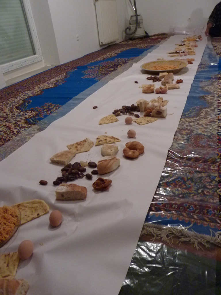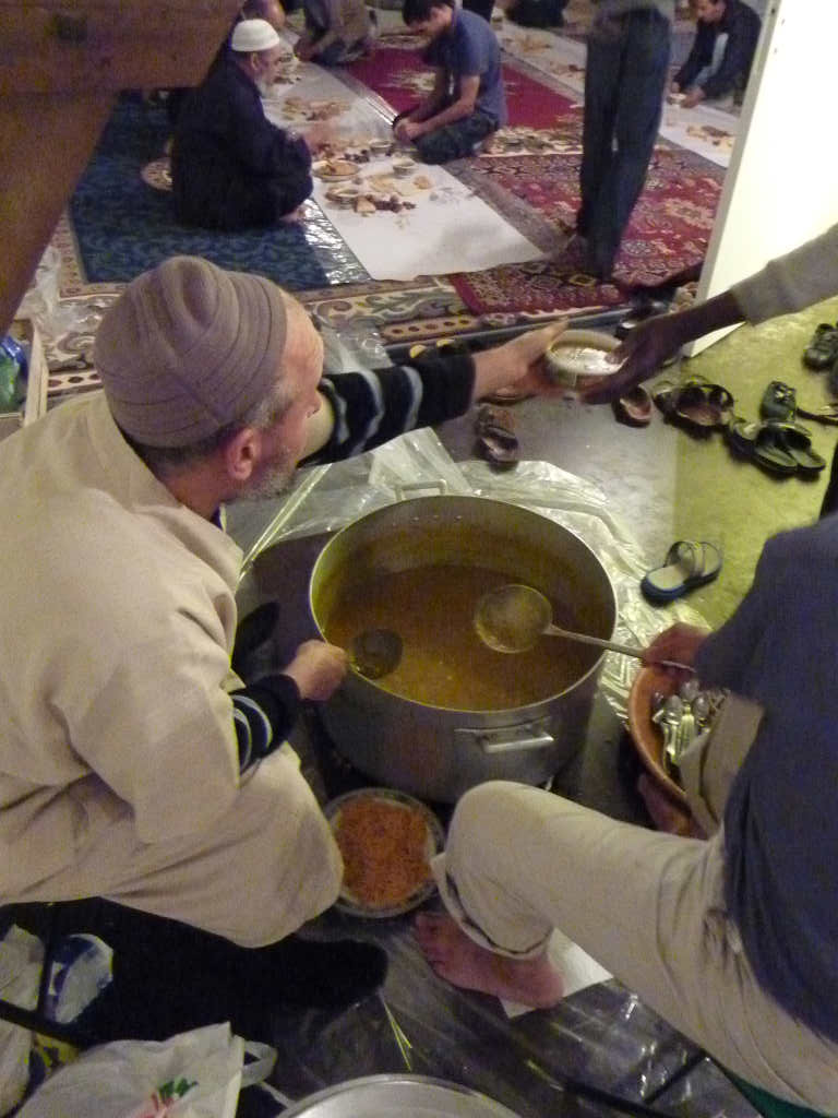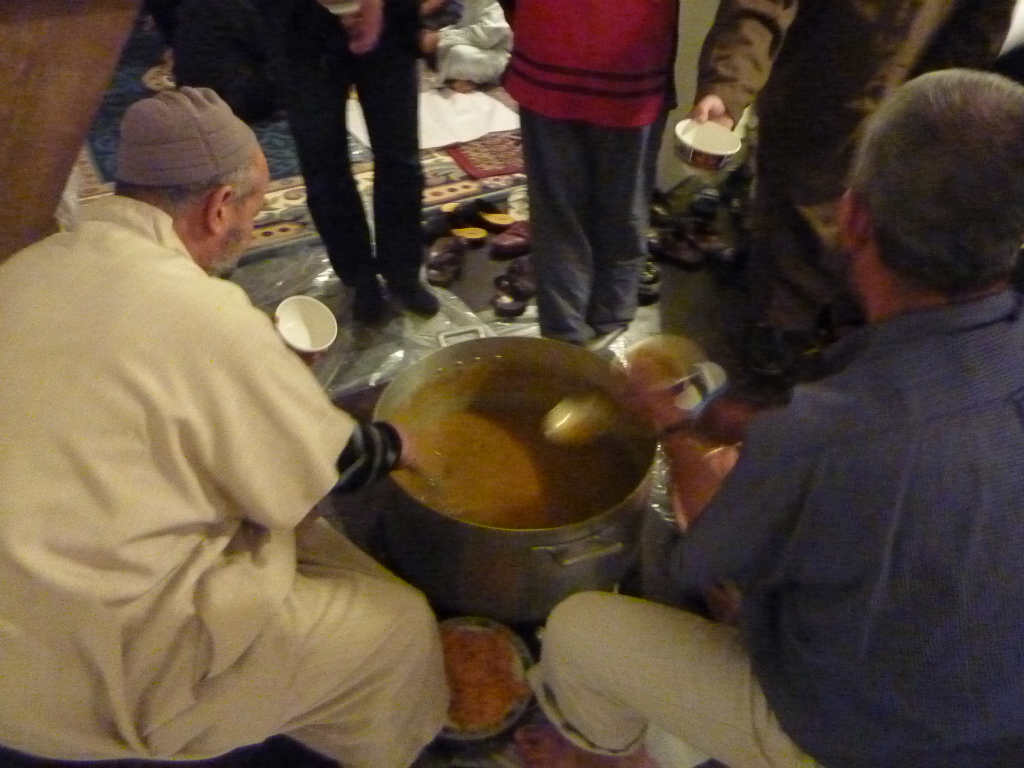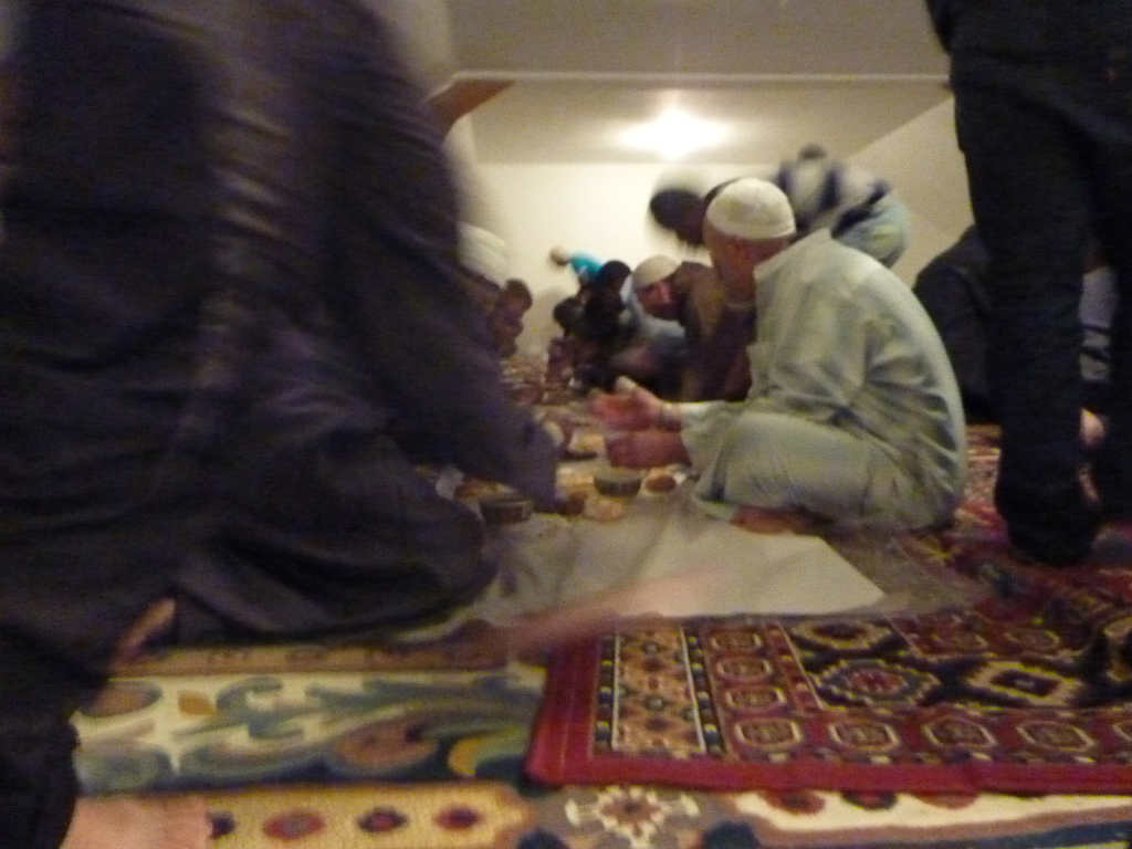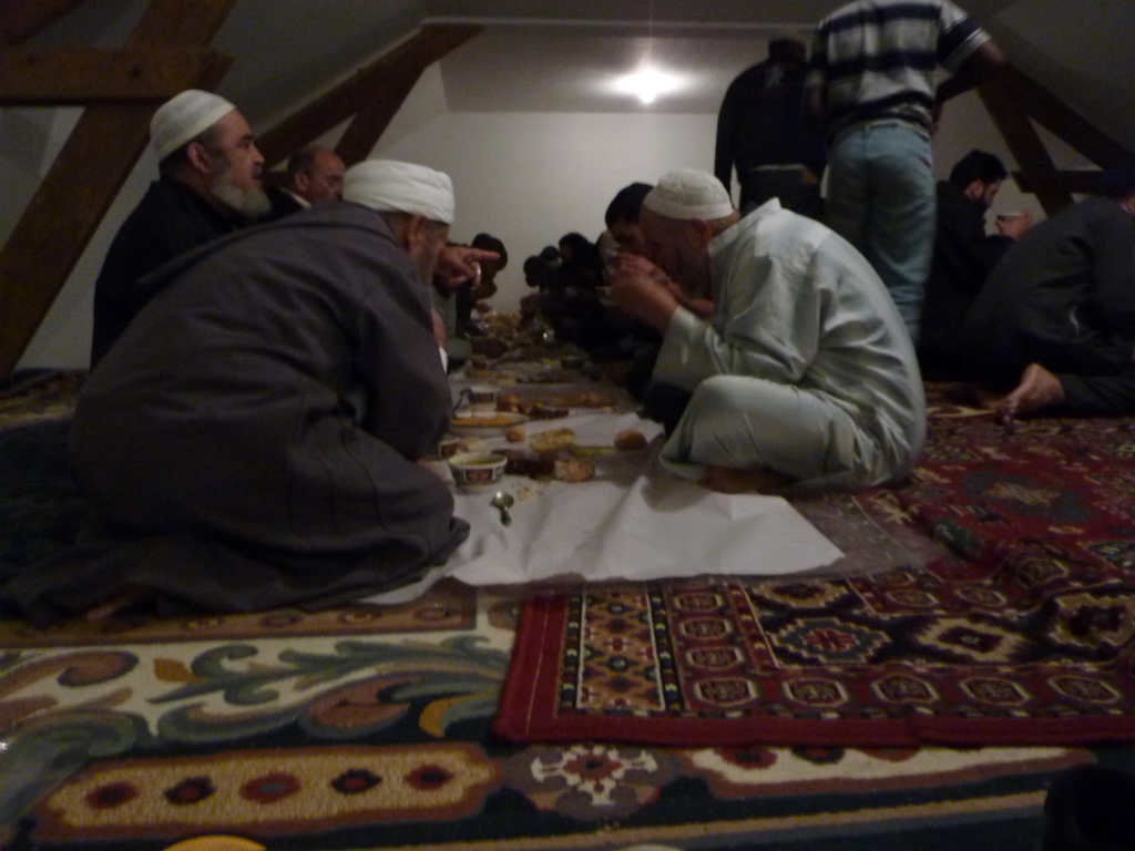A l’instar de beaucoup de mosquée, l’Iftar dans cette mosquée se fait à même le sol. La soupe est à l’honneur durant ce repas, elle est accompagnée de dattes, pain et quelques spécialités maghrébine.