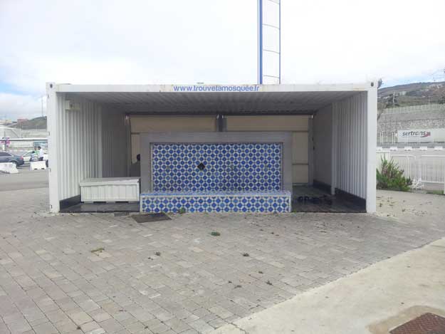 Les voyageurs en partance pour l’Espagne peuvent attendre de nombreuses heures avant que leur véhicule embarque, en attendant les musulmans peuvent prier dans une salle de prière plutôt atypique. En effet, une mosquée a été construite grâce à deux conteneurs. Une vingtaine de personnes peuvent y prier.