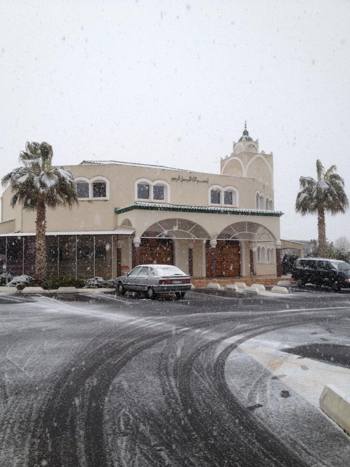 Depuis quelques jours une vague de froid balaye la France. Un manteau blanc a recouvert Béziers, sa grande mosquée et ses palmiers.