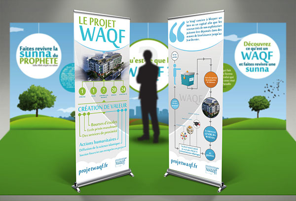 L’idée est d’orienter durant ces quatre jours la communication du Projet Waqf sur la notion de Waqf et faire en sorte que le Projet Waqf soit à la périphérie, tant au niveau du discours qu’en terme d’image (stand). Le concept est de promouvoir à travers un parcours en 4 étapes le principe du Waqf.